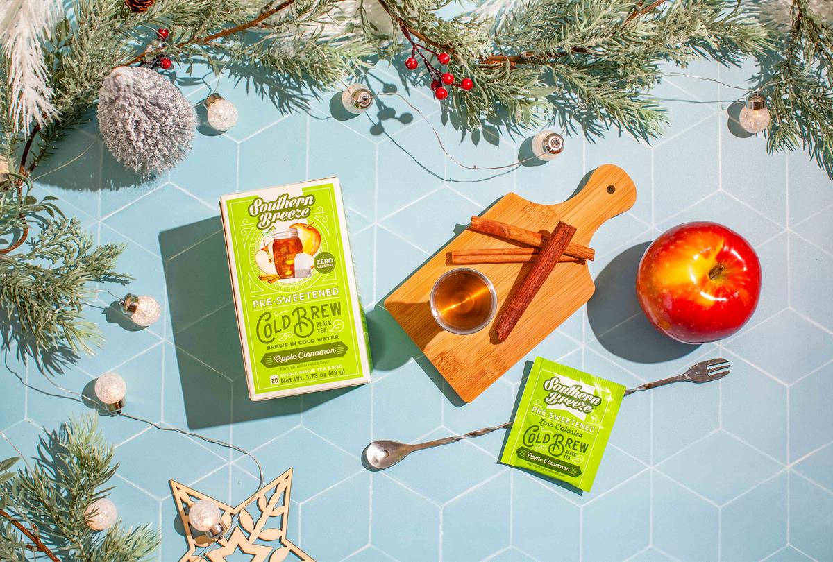 Southern Breeze Apple Cinnamon Cold Brew Sweet Iced Tea is a splash of fruity fall indulgence. It’s juicy apple tea bags are made with real tea leaves in a pre-sweetened bag that you cold-water brew, steep, chill and enjoy—and with no sugar, Sugar! So you can sip and share glass after guilt-free glass. Zero calories, meet heavenly hospitality!